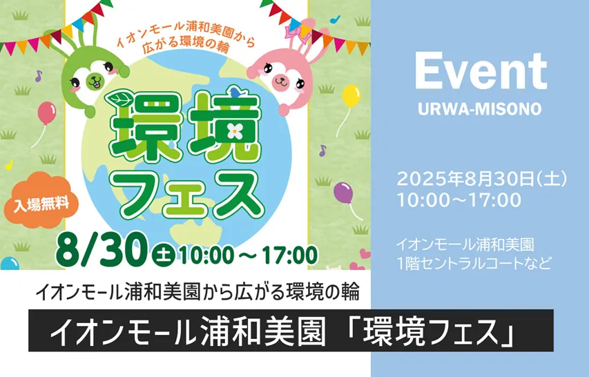 浦和美園の商業施設「イオンモール浦和美園」で、さいたま市とイオンリテール株式会社主催の「環境」をテーマにしたイベント「環境フェス ~イオンモール浦和美園から広がる環境の輪~ 」が2025年8月30日(土)に開催されます。