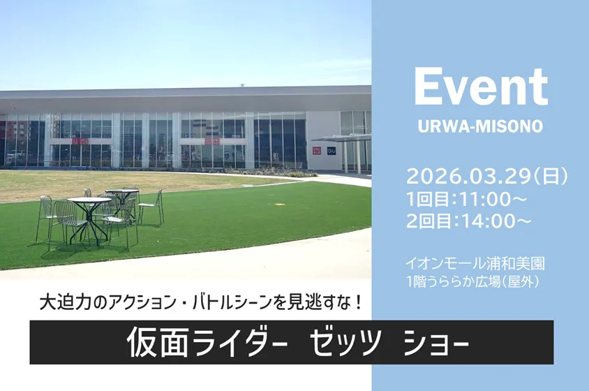 | 主 催 問合せ | イオンモール浦和美園 TEL: - FAX: - MAIL:- URL:https://www.aeon.jp/sc/urawamisono/ |