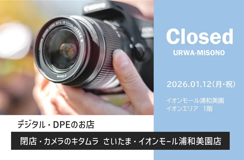 浦和美園の商業施設「イオンオール浦和美園」1階デジタル・DPEのお店「カメラのキタムラ さいたま・イオンモール浦和美園店」が2026年1月12日(月・祝)をもって閉店します。