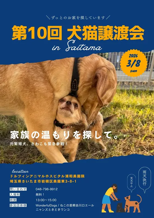 ドルフィンアニマルホスピタル浦和美園院にて『保護犬・保護猫合同譲渡会』を開催いたします