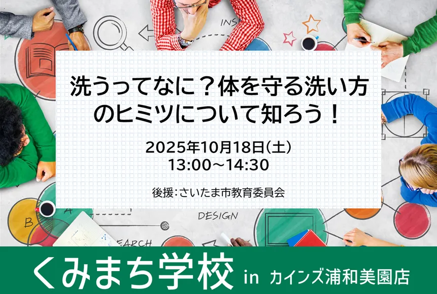 → 健康講座 洗うってなに?体を守る洗い方のヒミツについて知ろう!(朝霞店・新座店・浦和美園店)|くみまち学校