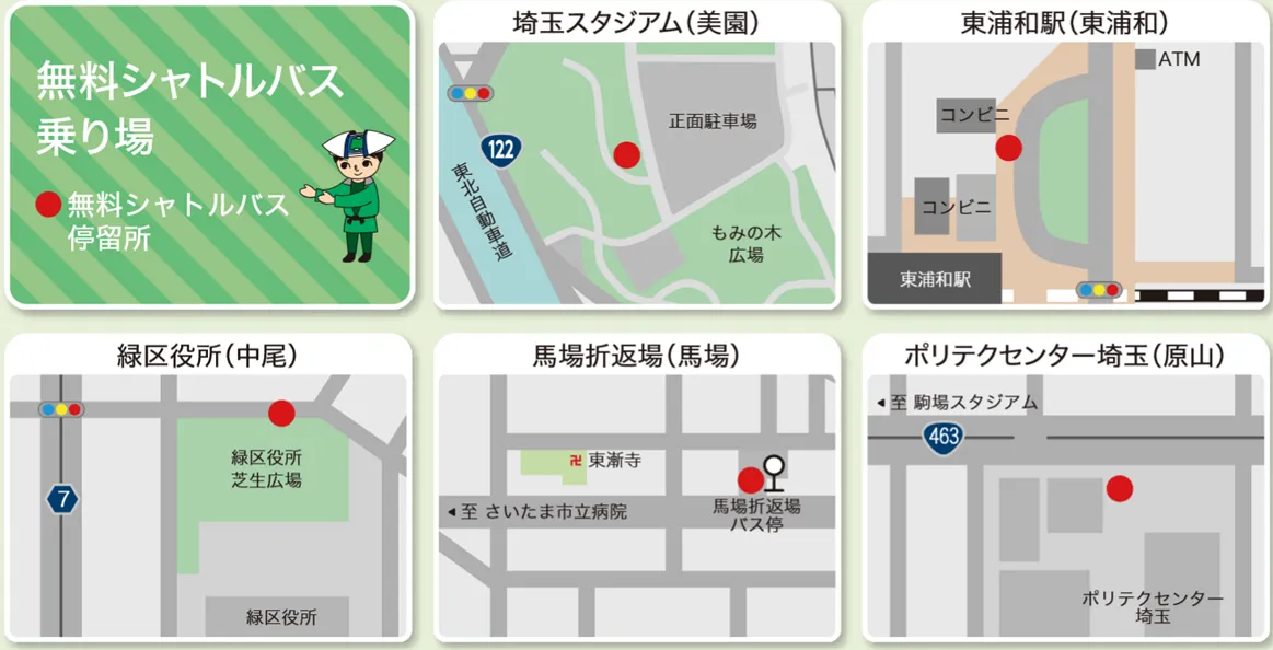 • ポリテクセンター埼玉(原山)⇔ 馬場折返場(三室)⇔ 埼玉スタジアム2○○2(会場)