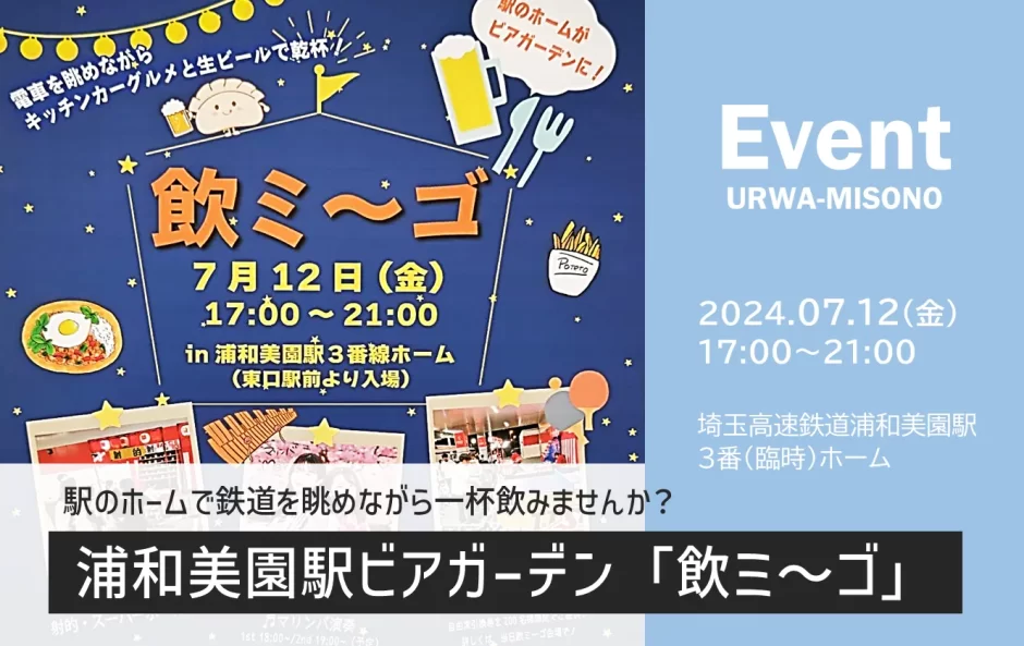 浦和美園の玄関口「浦和美園駅」の3番線ホーム(臨時ホーム)で「飲ミ~ゴ」が2024年7月12日(金)に開催されます。