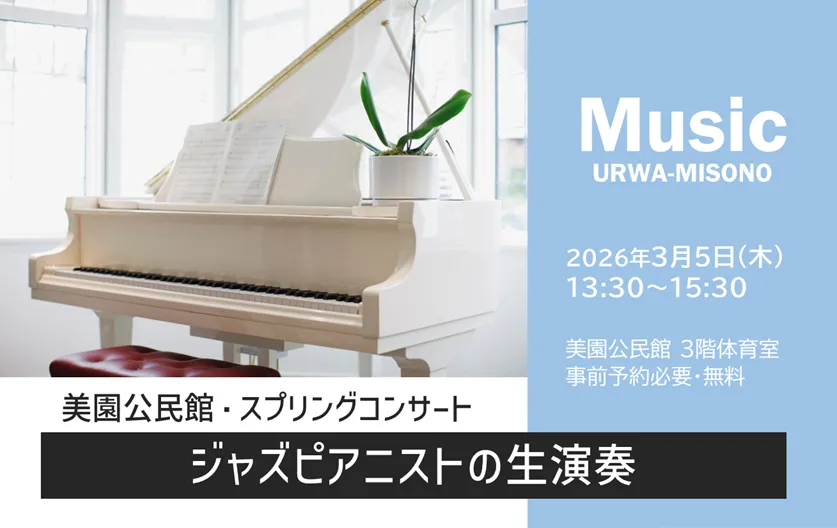 美園公民館「スプリングコンサート」ジャズピアニストの生演奏 2026年3月5日(木)開催