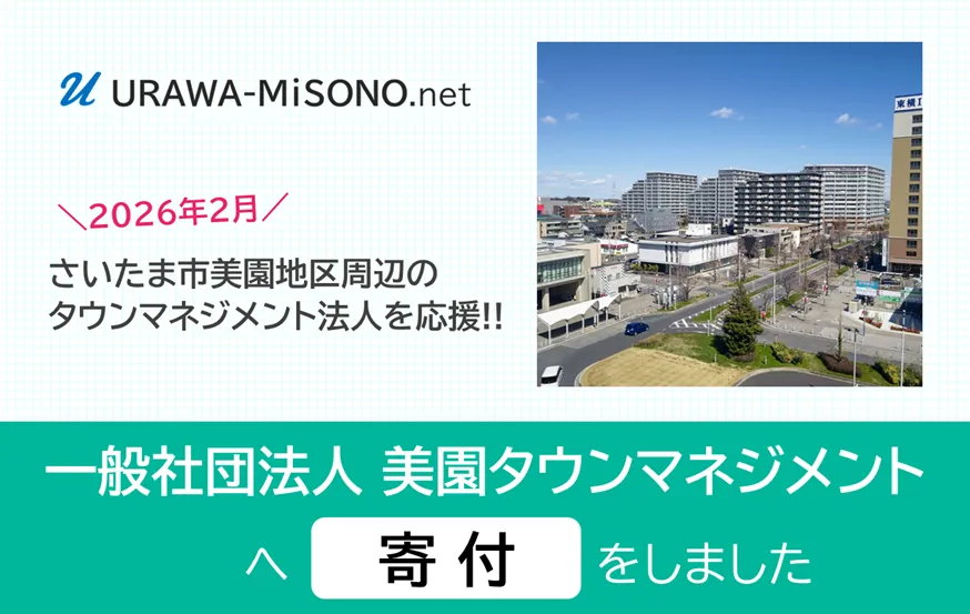 当サイト「浦和美園ドットネット」は、さいたま市美園地区周辺のタウンマネジメント法人『一般社団法人 美園タウンマネジメント』へ寄付(寄付金)をいたしました。