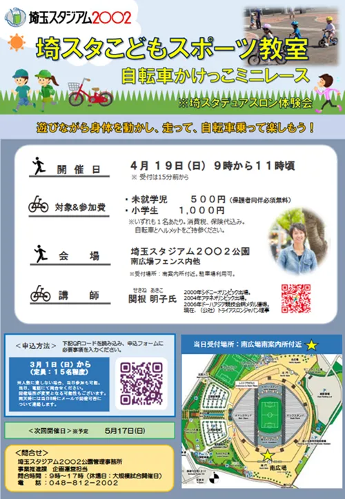 → 4・5月『埼スタこどもスポーツ教室』開催について|埼玉スタジアム2002