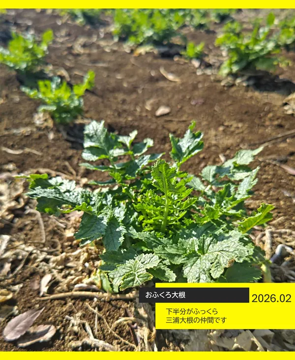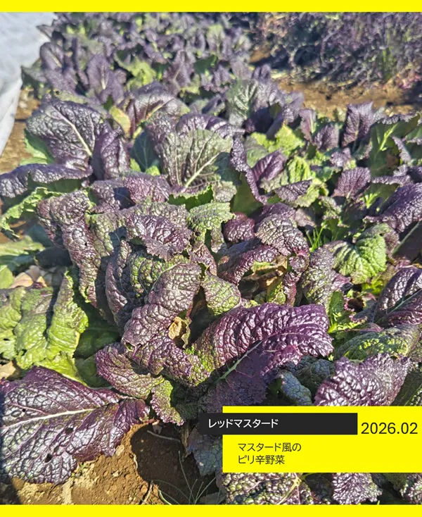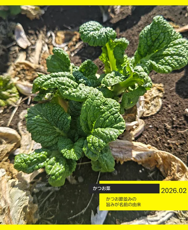 2026年1月下旬に農園を初めて訪問してから約1ヶ月が経過。2月訪問日は埼玉スタジアム2002で浦和レッズのホーム開幕戦だったこともあり、農園利用できるのは午前中のみでしたが、サービス利用者さんも何名かいらっしゃっていました。野菜の写真を撮影していると、利用者さんと「かつお菜」の食べ方についてお話しました。いろいろな食べ方がありますが「サッと茹でて、ポン酢でいただくのが美味しい」と伺えたり、齋藤さんに農地を貸してくれている地主さんからも「いい写真撮れた?」など、ほんのちょっとの時間でしたが土に触れながら交流する機会がありました。