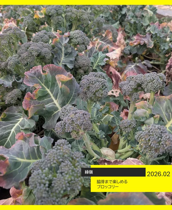 蕾(つぼみ)を食べる珍しい野菜・ブロッコリー。寒さにじっくり当て、甘みたっぷりに育ちます。大きい蕾を採った後も、小さい蕾がどんどん採れます。