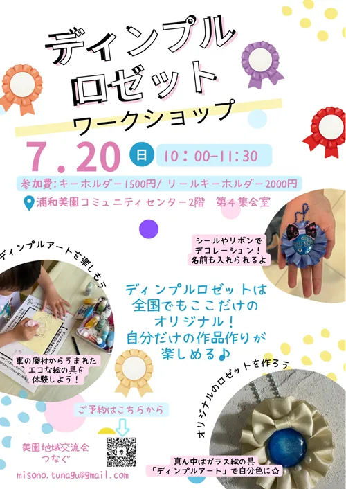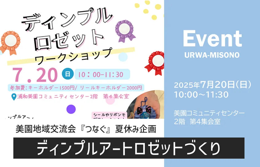 2025年7月20日(日)に、浦和美園駅東口から徒歩2分にあります美園コミュニティセンターで、美園地域交流会『つなぐ』が夏休み企画「ディンプルアートロゼットづくり」を開催します。