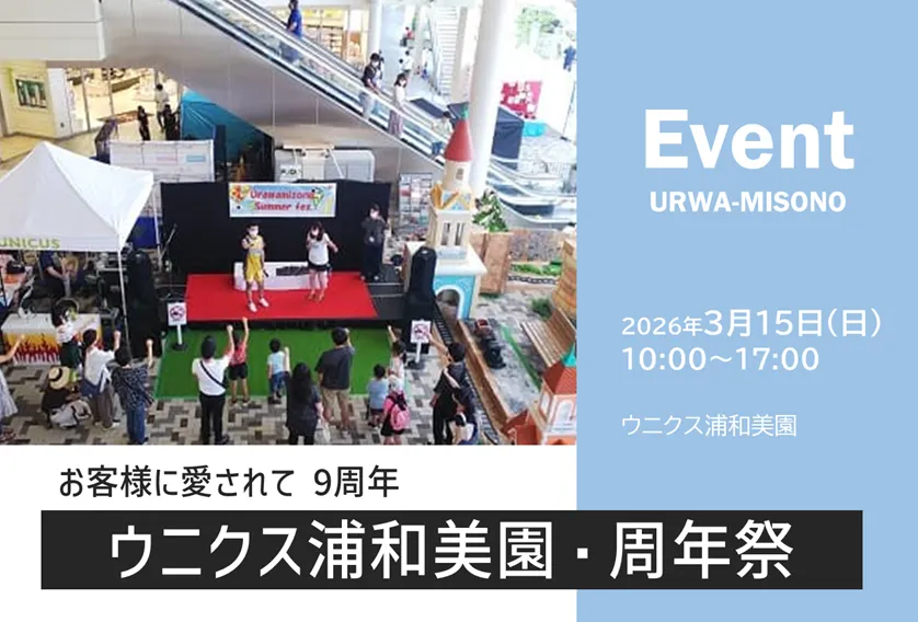 浦和美園の商業施設「ウニクス浦和美園」は2017年3月9日にさいたま市岩槻区美園東にオープンし、9周年を迎えます。今回の周年祭は2026年3月15日(日)開催。当日はステージイベントや人気のキッチンカーも出店しています。